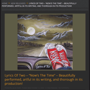 ♪♫ Thank you very much BandCamp Diaries for taking the time to review “Now’s The Time” and for the very kind words! ♪♫ Link to review→ https://thebandcampdiaries.com/post/697001673770614784/lyrics-of-two-has-announced-a-new-single-nows