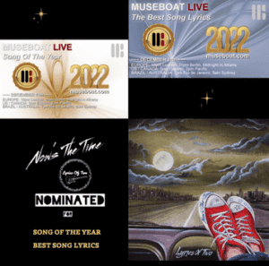Now’s The Time by Lyrics Of Two has the honor of being nominated for both Song Of The Year and Best Song Lyrics! Thank you very much to Museboat radio, and to all of the radio listeners for the nominations. Congratulations to all of the other very talented artists and musicians…